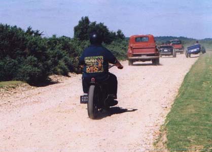 Simon Phillips and his mate Martin Griffin (Victory Wheelers) on a run through the New Forest, fenderless as nature intended with Radials :>) Below is Martin Griffins superb artistic Photo but above this is my favourite photo for 2003